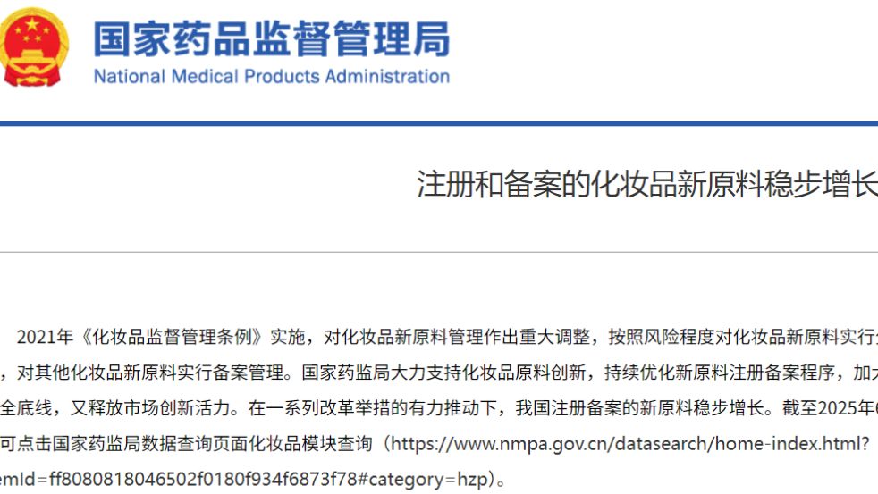 注冊和備案的化妝品新原料穩(wěn)步增長