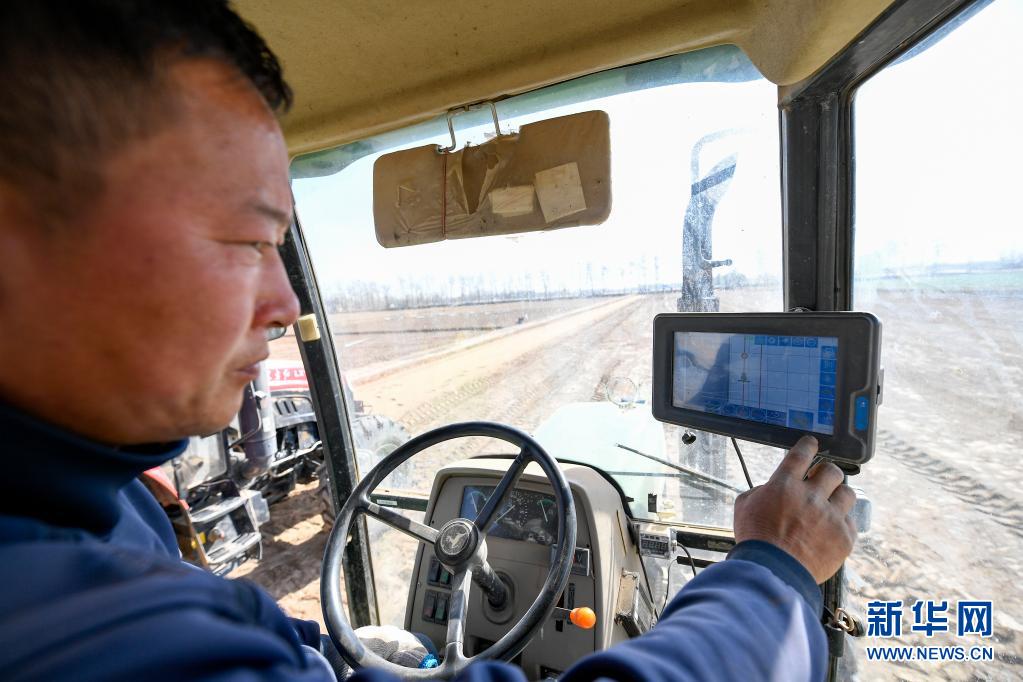 在位于寧夏吳忠市利通區(qū)金積鎮(zhèn)塔灣村的智慧農(nóng)業(yè)科技示范區(qū),農(nóng)機(jī)手在播種前調(diào)試自動駕駛拖拉機(jī)(2020年4月9日攝)。近年來,寧夏吳忠市利通區(qū)大力發(fā)展智慧農(nóng)業(yè),通過引進(jìn)北斗導(dǎo)航系統(tǒng)、智能環(huán)境與土壤監(jiān)測系統(tǒng)、植保無人機(jī)等智能化農(nóng)業(yè)技術(shù)和設(shè)備,幫助農(nóng)民在提高耕作、播種效率與質(zhì)量的同時,降低生產(chǎn)成本。