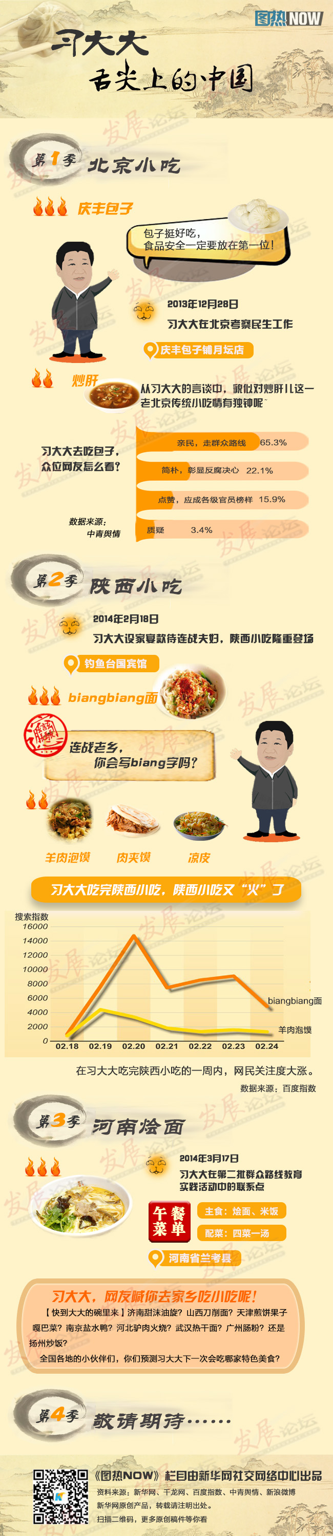 從慶豐包子到河南燴面,習(xí)大大的舌尖,嘗火了一批簡單實惠又不乏文化底蘊(yùn)的中華美食。究竟還有多少這樣的美食會一波波火起來?各級官員,快來學(xué)習(xí)習(xí)大大清新簡約樸實親民的“食風(fēng)”吧!