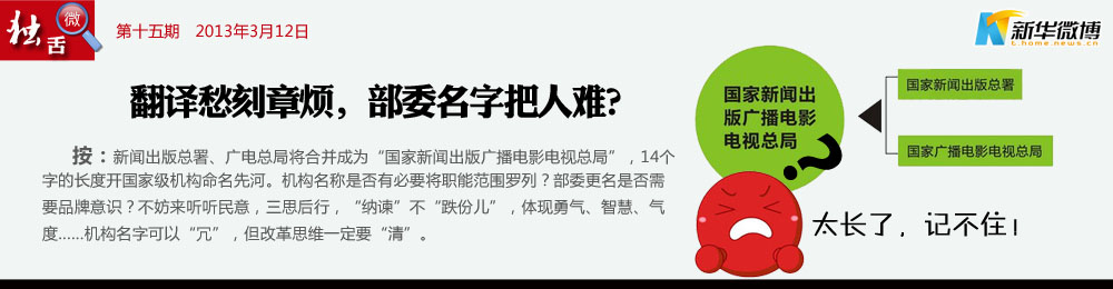 @霸氣外漏:【交通部也改了吧!】建議全稱為“國(guó)家新聞出版廣播電影電視微博微信彩信總管理局”,交通部應(yīng)該為“國(guó)家汽車火車飛機(jī)輪船摩托自行車部” 。