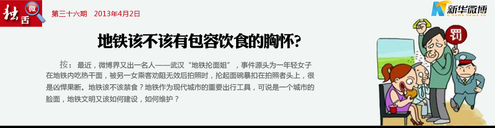 禁食可以,給個理由先 為什么飛機(jī)、火車都可以吃東西?春運(yùn)火車的擁擠和地鐵有區(qū)別嗎?飛機(jī)不是比地鐵更封閉嗎?雖然我也不贊成在地鐵飲食,但是地鐵禁食的理由到底是什么?一旦禁止,對確有需要的、特別是上班族有失公允,缺乏人性的關(guān)懷。