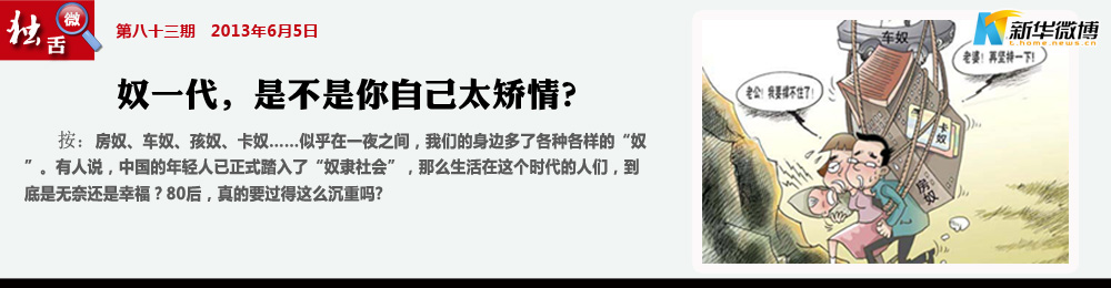 【孩奴】 80后父母一生都在為子女打拼、為子女忙碌、為子女賺錢。當(dāng)上了孩奴的人,不敢生病,不敢高消費,不敢輕易換工作。