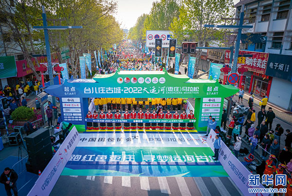 大运河边上,马拉松比赛鸣枪开跑(摄影:孔闯,拍摄地:山东省枣庄市台儿庄区)
