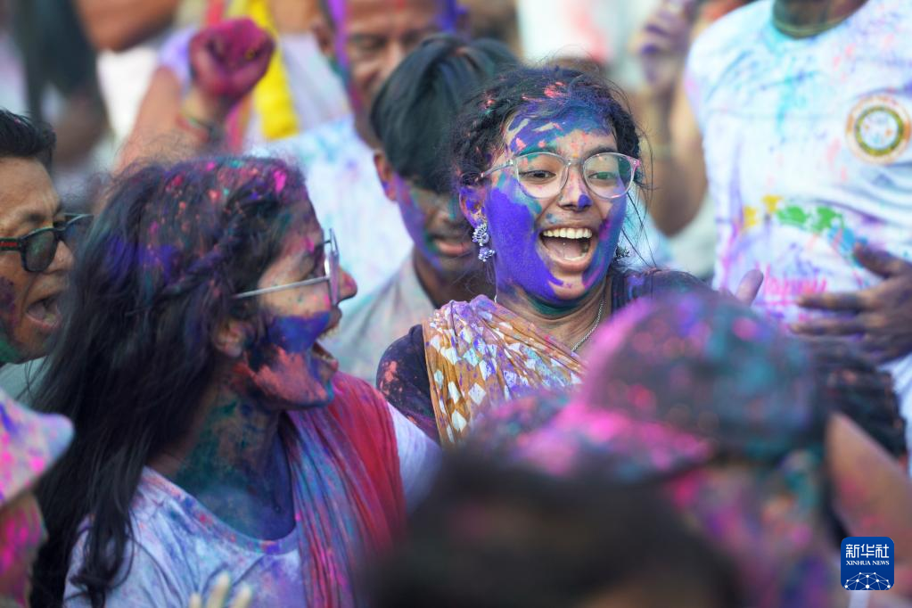 洒红节也叫胡里节,人们在节日期间互相涂抹颜料,迎接春天的到来。