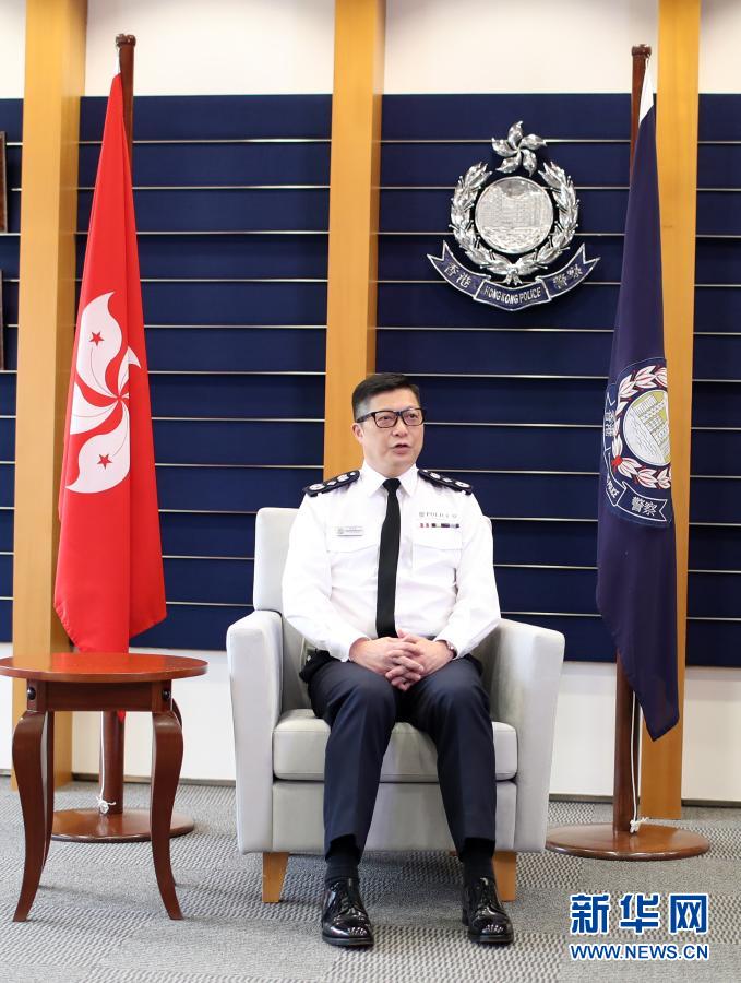 香港警務處處長鄧炳強接受采訪(1月28日攝)。新華社記者 李鋼 攝