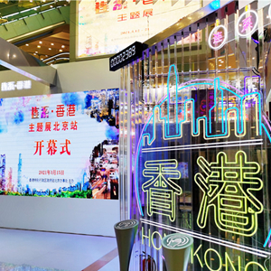 此次主題展展臺外觀通透明亮,內(nèi)部搭配錯落有致的霓虹招牌,還呈現(xiàn)香港古跡和香港街道的場景,讓觀眾身在北京也能感受到香港豐富多元的都巿面貌,體驗濃厚的“港風(fēng)”。展覽分為六大主題,包括“香港連接內(nèi)地與世界的橋梁功能”“商貿(mào)金融和創(chuàng)新科技”“多元文藝發(fā)展”“薈萃古今中外文化的特色”“綠色城市風(fēng)光”“京港合作交流”。展臺還設(shè)有兩個互動裝置,以富有趣味的方式讓參觀者“連系”香港,并為香港送上祝福。