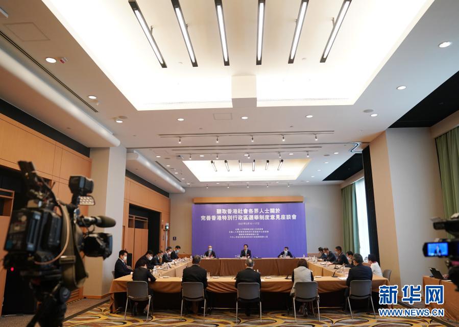聽取香港各界完善選舉制度意見座談會現(xiàn)場(3月17日攝)。新華社記者 李鋼 攝