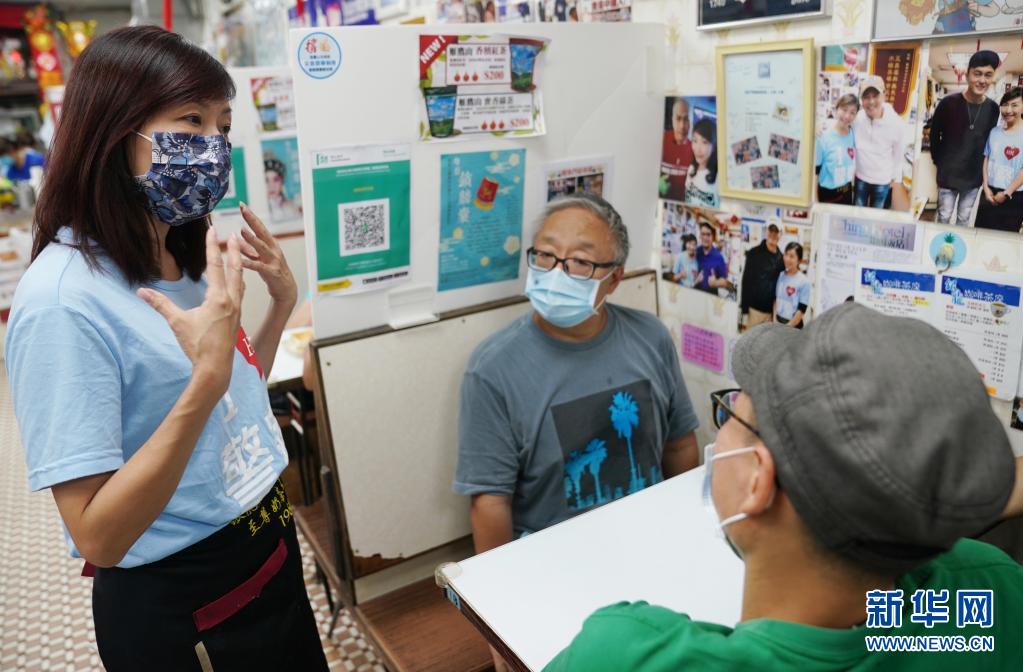 在香港鯉魚門“銀龍咖啡茶座”餐廳,女老板李凱瑚(左)在和店內(nèi)食客聊天(7月26日攝)。新華社記者 王申 攝
