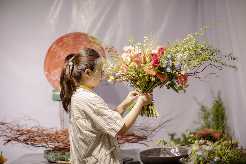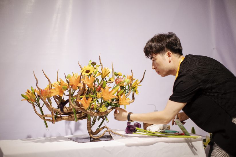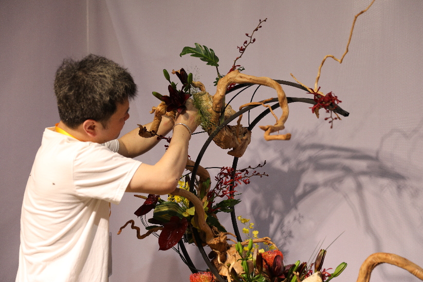 “輕攏慢捻抹復(fù)挑,插花也如琵琶語(yǔ)。”記者在現(xiàn)場(chǎng)看到,選手們沉浸在插花藝術(shù)創(chuàng)作中,鮮花、枝葉在他們的手中經(jīng)過(guò)一番規(guī)整修剪,又如繪畫(huà)般慎重落下一抹畫(huà)筆,嬌艷綻放的鮮花在新的布局下,逐漸呈現(xiàn)出定格的自然之美、線條之美與意境之美,花藝設(shè)計(jì)本身的創(chuàng)作過(guò)程,就是一場(chǎng)賞心悅目的藝術(shù)呈現(xiàn),人和花交流的過(guò)程,也會(huì)讓人們更加能夠體會(huì)到生命的真實(shí)與絢爛。