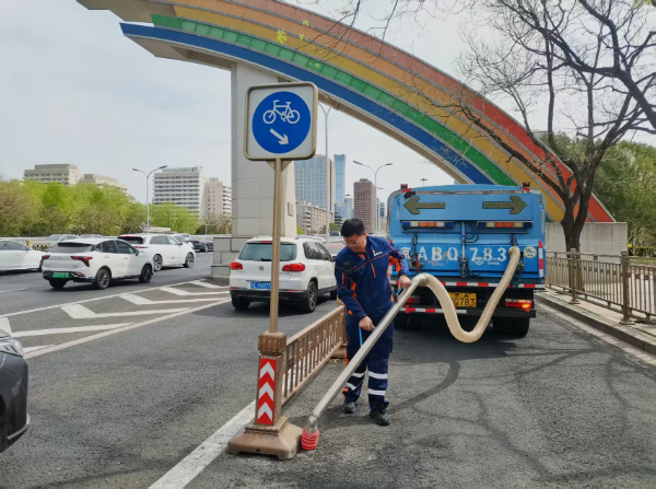 李彬始终坚持扎根环卫作业一线,每日忙碌在长安街、二环主辅路、三环主辅路等重要道路和重点区域清扫保洁路段,用脚步丈量自己的责任担当。