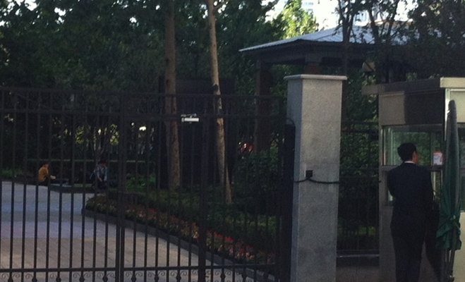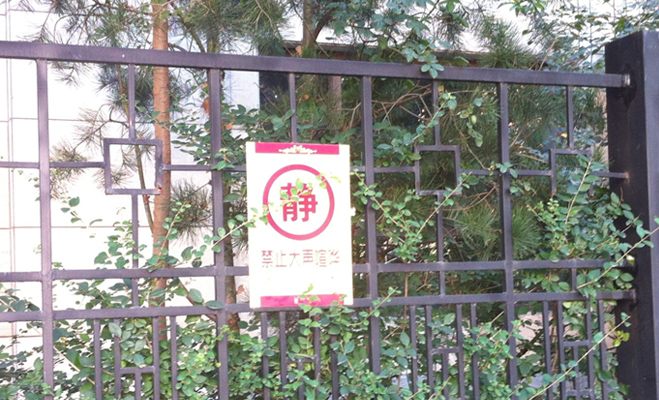 小區(qū)實現(xiàn)了人車分流,在行人入口,需要刷門禁卡才可以通過,謝絕外部人員進入。富力愛丁堡公館為封閉性小區(qū),設有消防通道,在消防通道前沒有車輛亂停的現(xiàn)象。在小區(qū)外部掛有警示標語“禁止大聲喧嘩”,貼此標語的原因在于小區(qū)樓盤與外面道路的距離很近,如果處于上班期間,小區(qū)周圍呈現(xiàn)一片“車水馬龍”的現(xiàn)象。