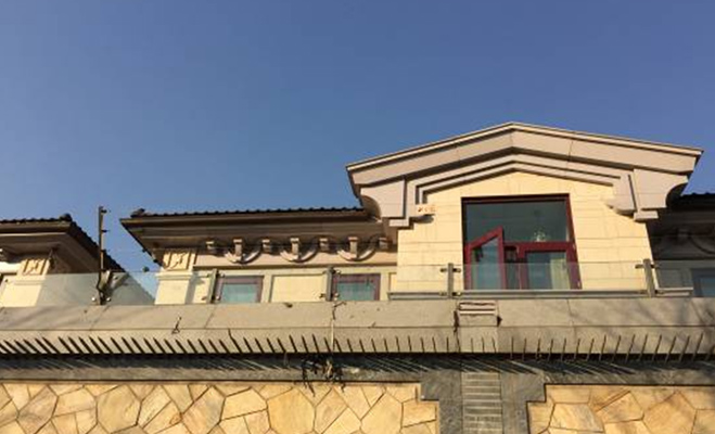 記者觀察到,項(xiàng)目四周高墻上有電線、攝像頭等安保設(shè)備,可以保障業(yè)主的居住安全品質(zhì)。/p>