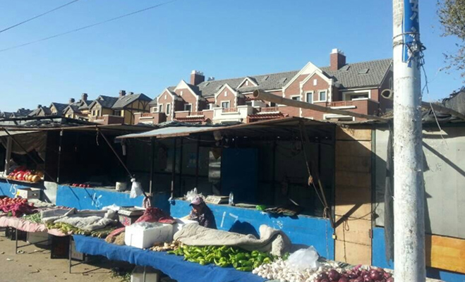 靠近項目南側(cè)有一家農(nóng)貿(mào)集市,很多周邊居民在此選購瓜果蔬菜。居民的基本生活條件能得到保障。