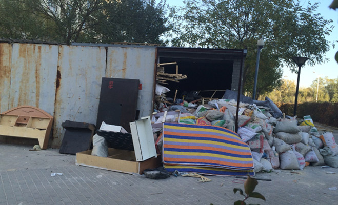 小區(qū)整體綠化率較高,記者也看到現(xiàn)場有保潔人員隨時在清掃。不過在小區(qū)的南部堆滿了各種裝修垃圾,有業(yè)主稱,“好多家裝修時就把垃圾扔這里,久而久之就多了,也沒人處理”。