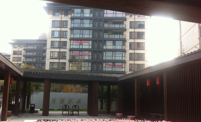記者進入萬科五礦如園南區(qū),首先被吸引的是入堂口的“半潭秋水”。庭院中一潭水池,而水池旁還設(shè)有一臺古琴,頗有幾分韻味。再往小區(qū)內(nèi)進入,還有一片小竹林。據(jù)了解,如園共有十六個院落,分別以春夏秋冬、琴棋書畫、風(fēng)華雪月、梅蘭竹菊中的十六個字作為主題。