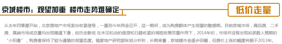 在房?jī)r(jià)小幅回調(diào)、資金面偏緊、信貸緊縮,必會(huì)導(dǎo)致樓市成交量緩慢,整個(gè)房地產(chǎn)行業(yè)洗牌的進(jìn)一步加速。2014年最值得關(guān)注的變量之一是樓市供求結(jié)構(gòu)或?qū)⒈荒孓D(zhuǎn)...