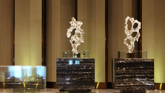 該項(xiàng)目還突破了傳統(tǒng)的單一大堂配置,運(yùn)用“多功能三進(jìn)式大堂”設(shè)計(jì),從社區(qū)、首層到地下,層層遞進(jìn)。其中社區(qū)門口大堂擁有400平方米,9米挑高,同時(shí)設(shè)有高科技門禁裝置,保證了安全性和私密性;7米挑高的室內(nèi)入戶大堂專配24小時(shí)私屬管家;地下的車庫大堂更是使用全石材鋪裝。