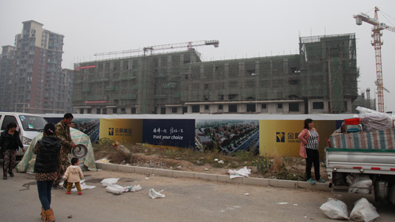 記者實探發(fā)現(xiàn),金隅瀾灣的樓盤已經(jīng)接近封頂,整個建筑的輪廓已經(jīng)能夠分辨,但外立面部分還沒有動工,無法看出整體效果,小區(qū)內(nèi)的綠化部分也尚未開始。