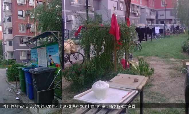 美和園的各個方向有多個進出口,小區(qū)安保方面管理較松,記者很輕松就在社區(qū)中間穿行,一路發(fā)現(xiàn)路邊偶有垃圾,車道上停車并不很規(guī)范,而社區(qū)樓棟間的草坪上也出現(xiàn)亂曬衣物和亂堆東西的現(xiàn)象。據(jù)小區(qū)內的業(yè)主爆料,美和園發(fā)生盜竊事件的頻率略高,大到停在社區(qū)樓下的電動車,小到家里的小東西,一般夜間小偷進來和出去都一樣方便,居民對記者表示無奈,“反映給物業(yè)也不管什么用”。