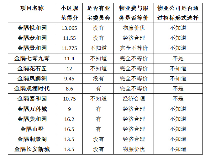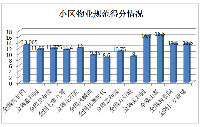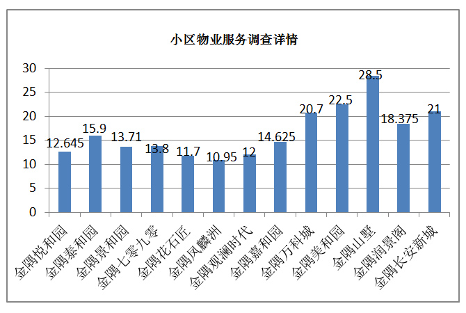 由上圖顯示,在目前的物業(yè)服務(wù)調(diào)查過(guò)程中,,有金隅項(xiàng)目得分最高,為28.5分,金隅觀瀾時(shí)代得分最低,為12分。