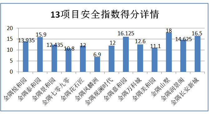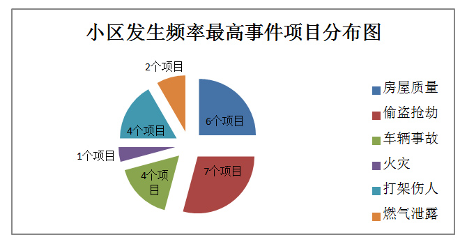 根據(jù)上述兩個(gè)表格發(fā)現(xiàn),整體來(lái)看,金隅各小區(qū)安全隱患較多,13個(gè)項(xiàng)目中共10個(gè)項(xiàng)目存在安全隱患,占77%。其中偷盜搶劫比例最多,占54%,其次為房屋質(zhì)量,占46%,項(xiàng)目中金隅花石匠、金隅觀瀾時(shí)代、金隅嘉和園三個(gè)項(xiàng)目問(wèn)題比較多。