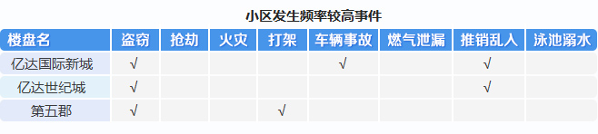 然而,綜合各項宜居指數(shù)來看,億達旗下的三個項目中有不同程度的盜竊、車輛事故及推銷亂入等安全事件發(fā)生,部分業(yè)主表示這些方面尚有改善空間。