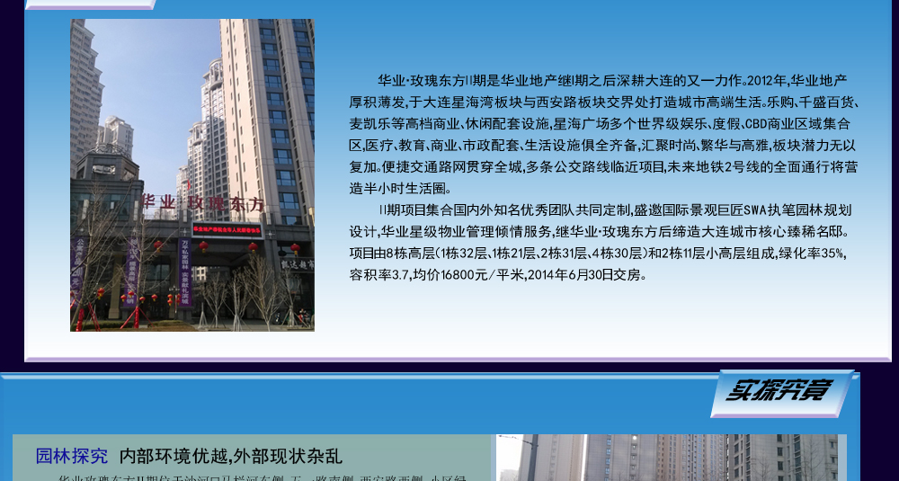 ????說起大連的幾大商圈,西安路與和平廣場不得不提,而位于這兩個商圈中間位置的華業(yè)玫瑰東方Ⅱ期,成為眾多購房者關注的焦點,本期的神秘訪客我們就實地探訪華業(yè)玫瑰東方Ⅱ期,看一看它的優(yōu)勢與不足。