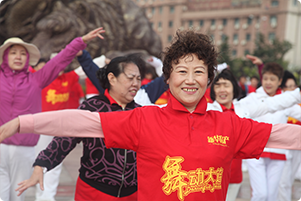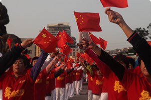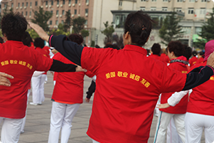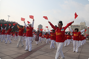 阿姨們手揮小國旗獻(xiàn)禮國慶節(jié) |