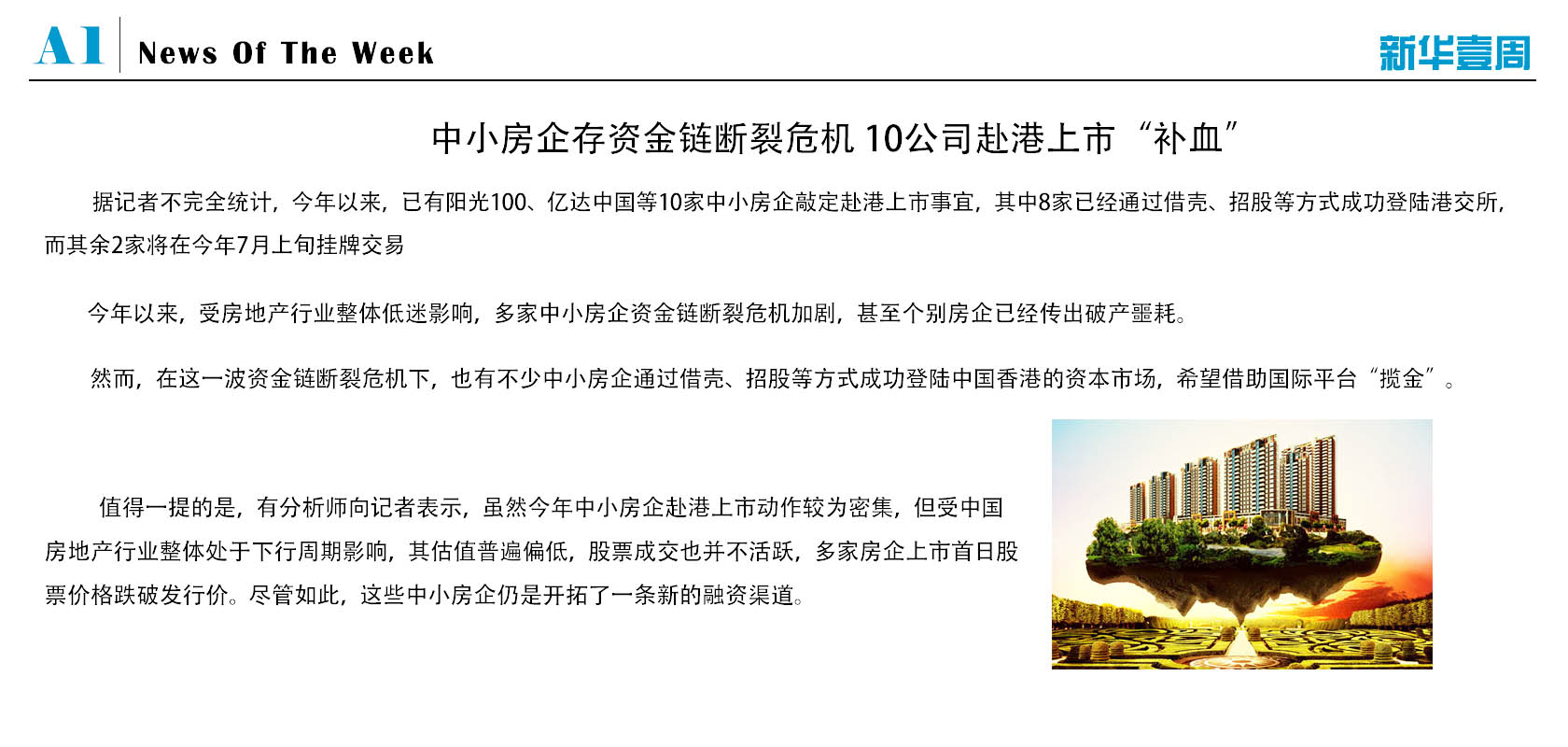 中小房企資金鏈斷裂10公司赴港上市