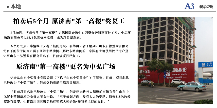 拍賣(mài)后5個(gè)月 原濟(jì)南"第一高"終復(fù)工