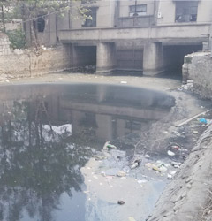 在項(xiàng)目的西面和南面發(fā)現(xiàn)了廣告中的兩條“景觀河”,分別為東西走向和南北走向,這兩條河的確是零距離位于香樹(shù)灣的別墅區(qū)沿邊。只是這兩條河均為死水河,其中一條只能稱作水溝。河水呈黑色,河邊上飄著各種垃圾,河水散發(fā)著難聞的惡臭味。宣稱花園、花香的香樹(shù)灣搭配這樣兩條“景觀河”似乎略顯不雅。 |