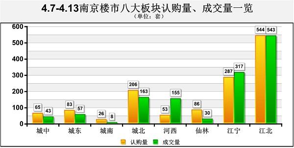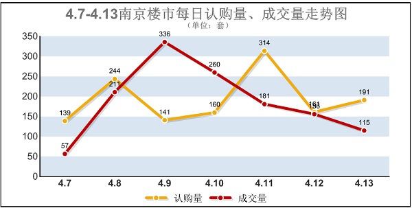 數(shù)據(jù)顯示,“銀四”第二周(4月7日-4月13日),南京樓市迎來11盤、近1900套新增商品房源的供應(yīng),庫(kù)存量也直線躥升至3.6萬(wàn)套水平。銷售方面,截止4月13日晚間10點(diǎn)整,網(wǎng)上房地產(chǎn)數(shù)據(jù)顯示,上周南京新增商品房共計(jì)認(rèn)購(gòu)1350套,成交1316套,環(huán)比上一個(gè)統(tǒng)計(jì)周期分別上漲了1.7%、11.7%。日均認(rèn)購(gòu)193套、成交188套。業(yè)內(nèi)人士據(jù)此推斷,市場(chǎng)已進(jìn)入年度強(qiáng)銷期,且由于青奧會(huì)停工的影響,銷售強(qiáng)度將不斷提高。…[詳細(xì)]