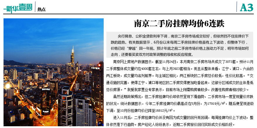 南京二手房掛牌均價6連跌