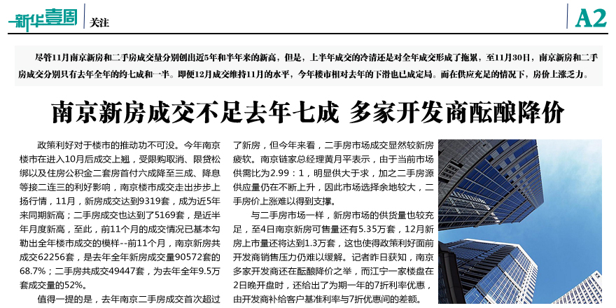 南京新房成交不足去年七成