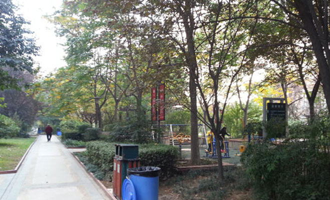 記者在楓林綠洲看到,社區(qū)道路兩側的樹木生長茂盛,并搭配多種綠植,景觀立體、層次感較強。小區(qū)路面也比較干凈,未見廢棄物,且每隔200米就有一個垃圾箱。