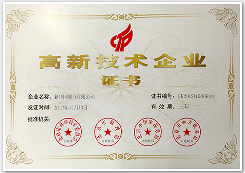 新華網(wǎng)獲頒國家高新技術企業(yè)證書,成為首家獲得高新技術企業(yè)認定的中央重點新聞網(wǎng)站。