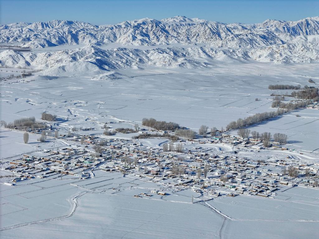 这是寒潮期间拍摄的吐尔洪乡的一处村庄。新华社记者胡虎虎摄