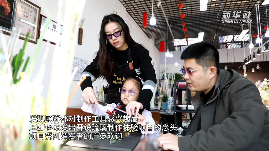 除了传承技艺,王婧瑶还积极探索运营新模式。发现顾客都对制作工具感兴趣后,王婧瑶萌发出开设琉璃制作体验项目的念头,项目受到消费者的广泛欢迎。