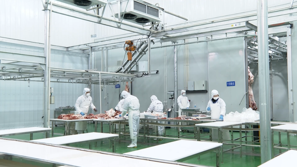 在企业加工车间,低温屠宰、冷藏排酸、精细分割等先进设备有序运转,一头肉牛可被精细分割为32个部位,加工成牛排、肉卷等多款产品。“根据客户对部位、肥瘦比例的个性化需求,我们定制加工,依托冷链物流直达终端,确保产品的新鲜度与口感。”公司负责人岳永超说。