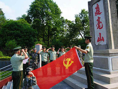官兵在革命紀(jì)念碑前重溫入黨誓詞