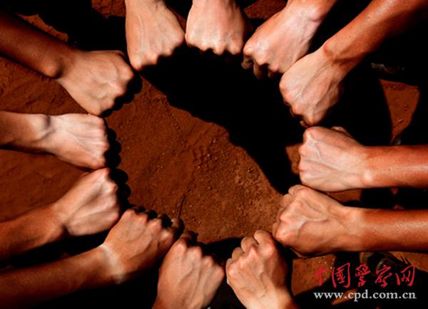 ????握緊拳頭,圍成同心圓,為了新?tīng)I(yíng)地加油!太陽(yáng)底下,一雙雙手臂黑白分明,團(tuán)結(jié)的拳頭盡顯力量之美。