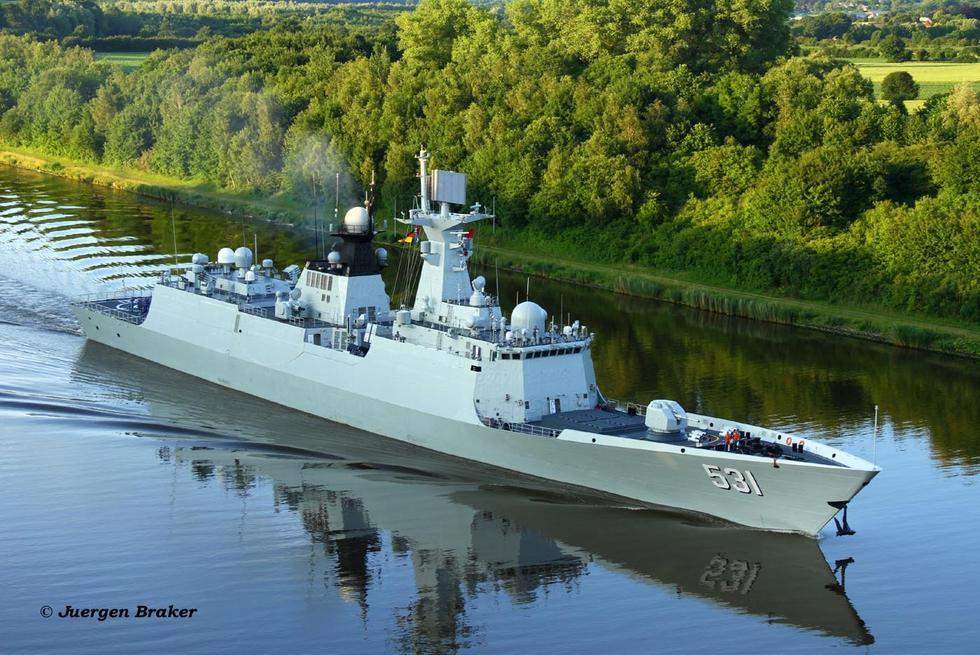 中國054A護衛(wèi)艦穿越基爾運河 風景美如畫