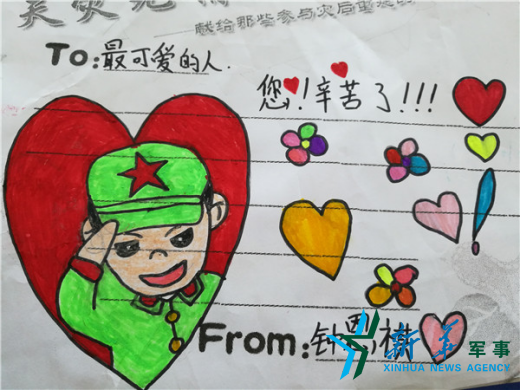 ????“官兵們很辛苦,早上6點(diǎn)就出門,直到深夜才回來(lái)休息。前天晚上,累了一天的官兵打著手電筒,幫助我們學(xué)校清理走廊的垃圾,扶正校園里被臺(tái)風(fēng)吹倒的樹(shù)木,讓學(xué)校師生非常感動(dòng)?!蔽寰壍诙?shí)驗(yàn)學(xué)校德育處負(fù)責(zé)人黃森說(shuō),小朋友們想用自己的方式表達(dá)對(duì)官兵的感謝,就自己動(dòng)手制作了感恩卡。