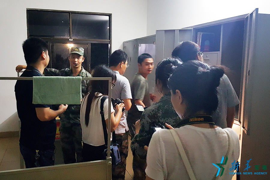 網(wǎng)絡(luò)名人以及媒體代表參觀連隊(duì)營(yíng)區(qū)、內(nèi)務(wù)設(shè)施。李朋芳 攝
