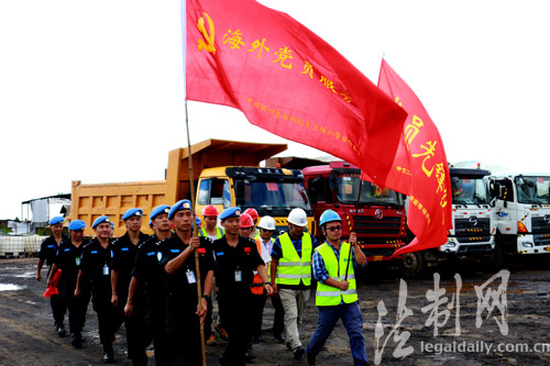 ????利比里亞蒙羅維亞時間:9月23日,中國第四支駐利比里亞維和警察防暴隊“黨員服務隊”深入利比里亞中國港灣工程有限責任公司,與該公司支部一起開展“兩學一做”實踐,送國旗到工地、給工地工程車張貼國旗,給企業(yè)黨員上黨課、一起交流學習黨章,為企業(yè)員工免費義診,送健康,團結(jié)凝聚利比里亞華人、華僑于黨旗國旗下,同力維和、同心愛國心同,干事創(chuàng)業(yè),為祖國爭光添彩,受到企業(yè)及員工的一致好評。(李金良 鄭志剛)