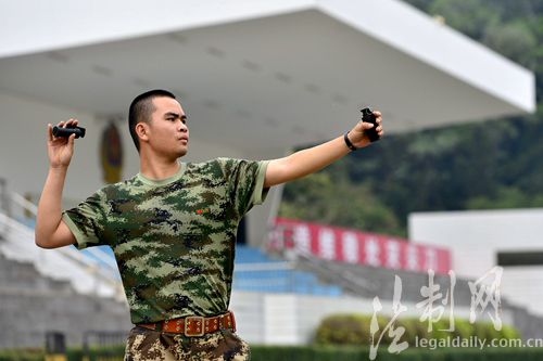 ????練兵場上空被投擲的防暴彈劃出一條條優(yōu)美的弧線?!鞍谁h(huán)、九環(huán)、十環(huán)……?!眻蟀袉T響亮的聲音響徹練兵場。班長蔡錦彬投擲的防暴彈仿佛對靶心有向心力,一環(huán)比一環(huán)高;其他官兵也不甘示弱,剛剛創(chuàng)下的好成績不斷被刷新,戰(zhàn)士廖國勇猶如賽場上的一匹黑馬,憑著過硬的實力,一路過關斬將,奪得第一。(林宇華)