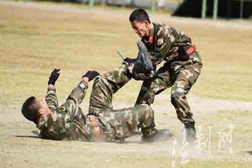 ????“進(jìn)可一招殺敵,退可一招制服?!币坏裙Τ肌⒎纯旨獗?、軍事教員、四級(jí)警士長(zhǎng)李文介紹,此次展示的特種格斗控制術(shù)是該支隊(duì)在緝私、緝毒、反恐、維穩(wěn)等長(zhǎng)期戰(zhàn)斗中形成和發(fā)展起來的一項(xiàng)格斗控制技能,綜合運(yùn)用踢、摔、擒拿等技法,涵蓋重點(diǎn)部位打擊、徒手打擊、警械運(yùn)用等要領(lǐng),使官兵在訓(xùn)練中體驗(yàn)綜合格斗,在格斗中突破自我身體極限,達(dá)到強(qiáng)身健體、提高戰(zhàn)斗水平的目的。