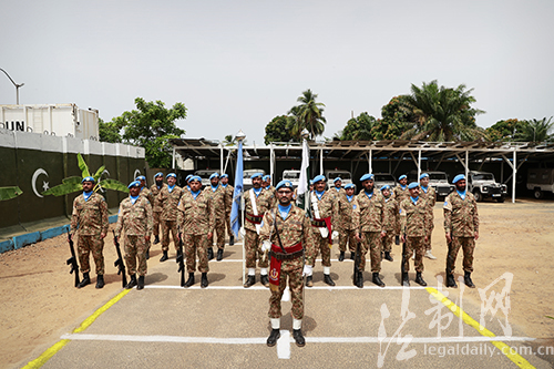 ????此次“巴基斯坦國慶日”慶典活動(dòng)邀請了駐利維和軍警,聯(lián)合國駐利比里亞特派團(tuán)(聯(lián)利團(tuán))各級(jí)官員,以及利比里亞國家部隊(duì)、警察代表等100余人參加。慶典活動(dòng)由聯(lián)利團(tuán)維和部隊(duì)司令賽利胡·尤巴致辭,先后進(jìn)行了閱兵、升旗、贈(zèng)送紀(jì)念品等活動(dòng)。