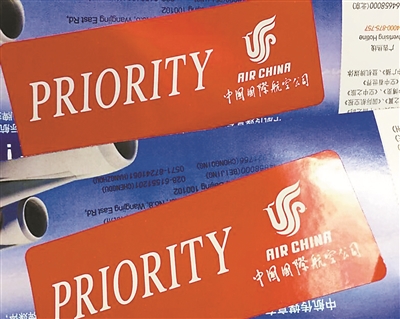 貼在登機牌后的優(yōu)先標(biāo)志。記者 鄒菲 攝