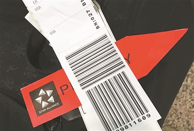托運行李上的優(yōu)先標(biāo)簽。記者 鄒菲 攝